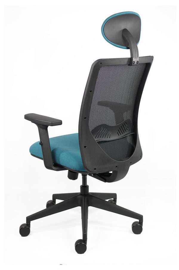 Black netted backrest with breathable netting and adjustable lumbar support.